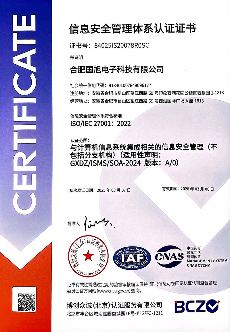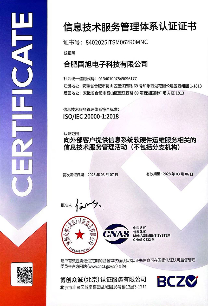 合肥國旭電子科技有限公司創(chuàng)立于2006年,總注冊(cè)資本2008萬。公司總部地址位于安徽IT主流商圈核心,合肥市蜀山區(qū)望江西路與肥西路交口西湖國際廣場(chǎng)。 公司是專業(yè)從事智能防雷檢測(cè)系統(tǒng)、智能化工程設(shè)計(jì)與施工工程、防雷設(shè)計(jì)施工工程、數(shù)據(jù)中心機(jī)房、消防工程、網(wǎng)絡(luò)監(jiān)控安全技術(shù)防范工程、及智能變電站安全預(yù)警系統(tǒng)。